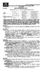 Graff X Celabitofkandi Colt 1 Year Old Bay or Brown Colt ProfileEnquire Sire: Graff Colour: Bay or Brown Dam: Celabitofkandi Sex: Colt Age: 1 Foaled: Oct 09, 2024 Country: Australia Silks: First Name (required) Last Name (required) Your Email (required) Phone Message Hello, I'd like to know more regarding the horse Graff X Celabitofkandi Colt you have listed as available. Send Δ